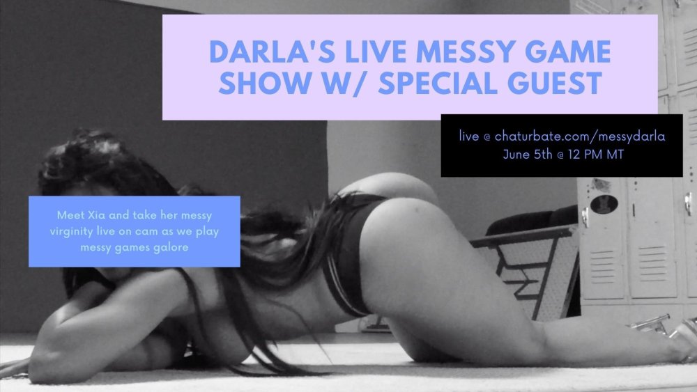 Hi all, Messy Darla here. This Friday I'll be introducing a new model, Xia, to getting messy.. and boy is she in for a treat ;-) Join us on Chaturbate this Friday, June 5th at 12 PM MT !! We'll be messy wrestling, playing Jenga with messy dares, doing messy bondage, playing messy card games, busting out my gunge tank... and the loser of our games will always be punished with mess of course ;P