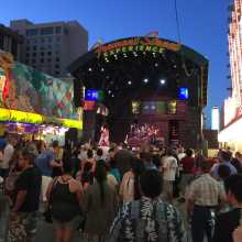 There are two Las Vegases. The newer, glossier one is called "the strip" and it's where you'll find mega-hotels like the Bellagio and Paris. But 15 minutes downtown sits the old original Vegas. The one with the neon cowboy. The one from old James Bond movies. The main scene is on Fremont Street. Nowadays it's been blocked off to traffic, and to compete with the gloss of the new Vegas, they've cranked up the fun! There's a giant overhead screen and bars and casinos and music everywhere. It's where you go to really have fun, not spend a lot, and let loose with 3 blocks worth of other people doing the same thing! It's symbolic that UMD's new hosting center happens to be just one block away.